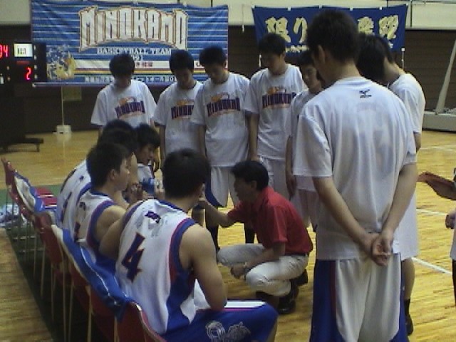A1 決勝リーグの富田高校戦で平佐田がけがをしてしまったが、平佐田はゲームの中心選手であり、キャプテンとして精神的にも成長してきており、信頼できる選手であるから使わざるを得ないと考えてはいた。本人も「試合に出る」と言ってきたので出場させ、平佐田の負担を軽減させるためにも、ゾーンディフェンスにした。国体の練習を週に3日やっており、選手の疲労もピークである。そんな中で価値ある優勝だと思う。しかも昨日から今日まで、1度も逆転されずにきていることは、大きな成果だ。