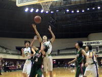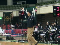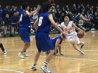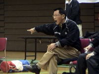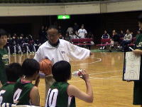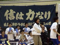 A2 インターハイの3回戦、結果としては9点差で負けました。第1ピリオドが3−21というスコアであり、これを体育館に掲げています。負けたゲームの悔しさを忘れないようにすることが、国体へのモチベーションにもつながったと思います。また、このチームはオフェンスのチームではないので、ディフェンスを中心としてもう一度チーム作りをしてきた。今日の決勝は相手を25点に抑えることができ、ディフェンスは合格点を与えられる。インターハイからスタートメンバーが2人変わっている。D米谷は、もともと力のある選手であるが、けがやディフェンス力に不安があったことなどでインターハイの時には、エントリー変更までした選手である。しかし、米谷にディフェンス力がついたことで、スタートで起用できるようになった。米谷の成長により、オフェンス力も上がった。