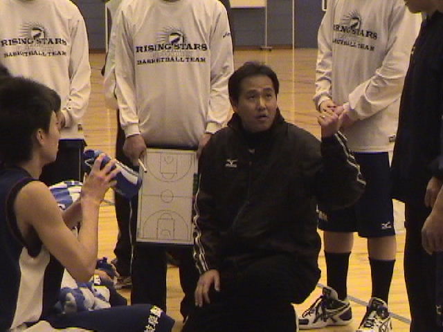 A2 ディフェンスを中心に、ブレイクを出そうという意識を徹底している。そのためには、とにかく一生懸命やることと、絶対に手を抜かないこと。選手は日々叱られながら頑張るの繰り返しです。(ベンチでは「チームでやろう」という声が多く聞こえてきましたが)全国で戦えるチームにするためには、個々の能力だけでは勝てない。正月の練習ゲームで全国の強豪校と対戦した経験でわかってきた。そのレベルでやるにはディフェンスもオフェンスもチームでやっていかなければ勝てない。だから、チームでやるという意識をもたせている。