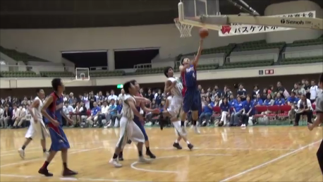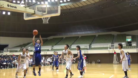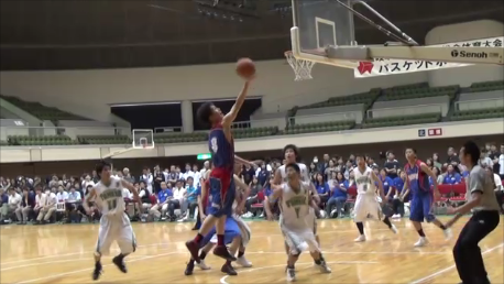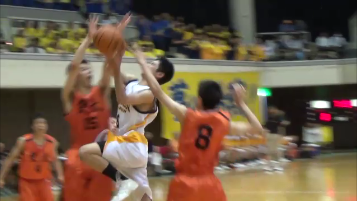 A1 4月下旬の関東遠征でチームが機能せず、ひどい状態でしたが、そこから選手は自分たちがやるべきことは何かを自覚してきました。この大会も1・2回戦も内容としてはよくなかったのですが、選手はよく頑張ってくれました。特に、ゲームを通してディフェンスとリバウンドを頑張ったのが大きかったです。岐阜農林戦では相手はアウトサイドシュートが多かったのですが、1試合を通して入ることはないと思っていたので、とにかくリバウンドとそのあとのリターンを速くするようにしました。C木村のドライブで勢いがつき、下級生のO山田も頑張ってくれました。G海津は気負いもありましたがよくやってくれたと思います。
