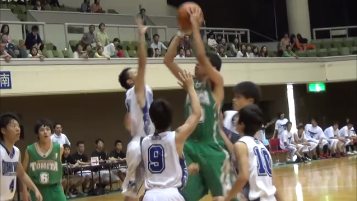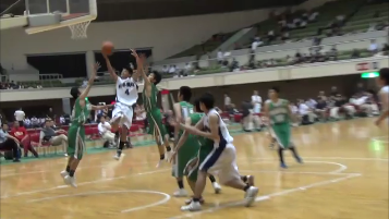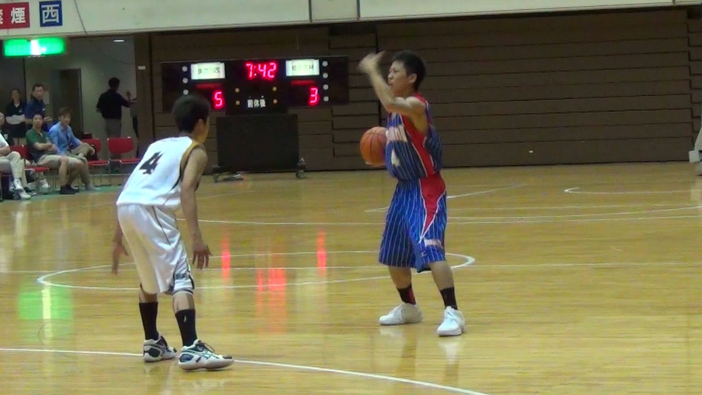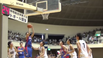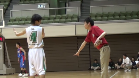 A3 ディフェンスからのブレイクです。ボールを取りにいかない、ギャンブルをしない、悪いショットをうたせてリバウンドを取り走るというスタイルです。岐阜農林戦では、後半の立ち上がりに24秒オーバータイムをとったり、悪いショットをうたせてリバウンドから速いパス回しで攻めることが少しできたことが成果です。