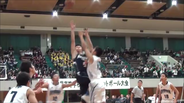 A2 前回大会で富田高校のゾーンを攻め切れませんでしたので、ゾーンに対する取り組みをしてきました。今大会も決勝まで、ゾーンが多く、マンツーマンに対する手の内を見せずにここまできたので、ハードなディフェンスが来たときの不安要素はありましたが、よくやったと思います。この大会でも、岐阜農林に対してインサイドに過敏になりすぎないようにディフェンスを修正しながら、ボールマンに対してプレッシャーをかけつつ、チームでスペースを抑えることで抜かれることを防ぐことができました。また、岐阜農林戦では松浦がリバウンドをよく頑張りました。3年生としてよくやってくれたと思います。